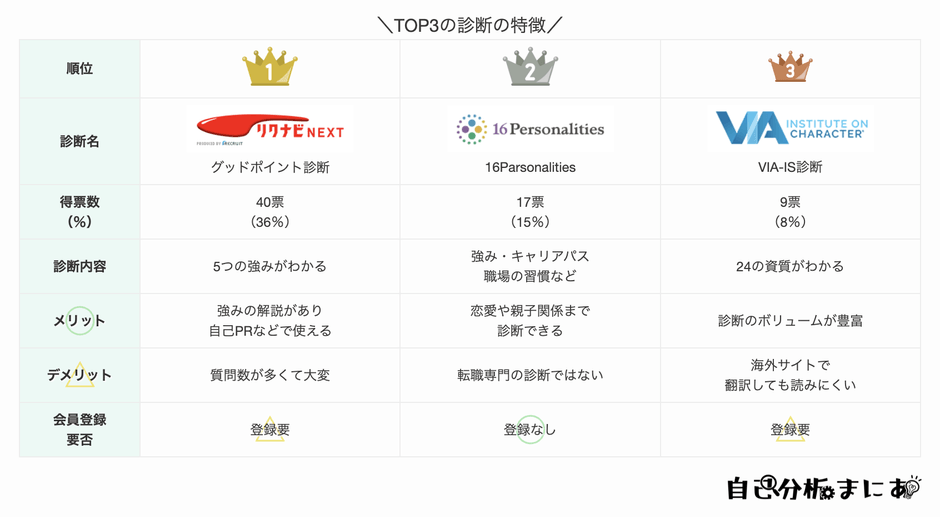 第1位 :グッドポイント診断(リクナビNEXT) 40票(36%)