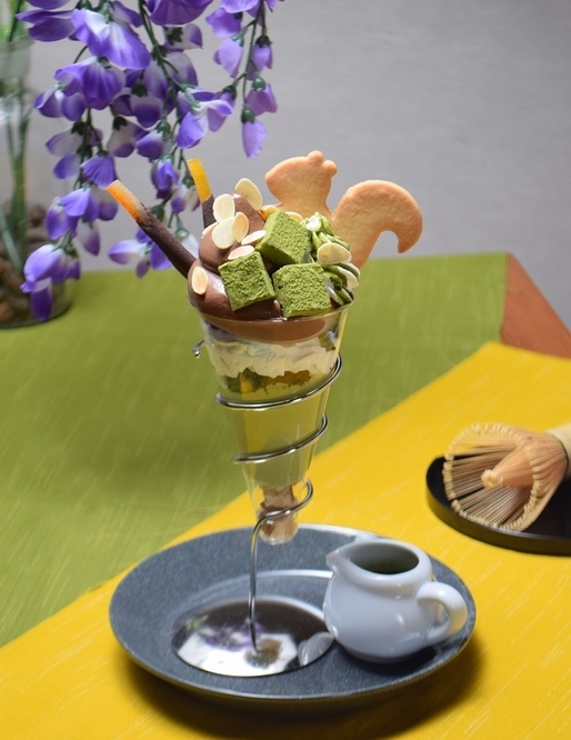 5月の新茶時期に合わせてリリースする抹茶パフェは、厳選宇治抹茶を使用した自家製の抹茶生チョコレートを、当店人気の濃厚チョコレートソフトと一緒に楽しめる贅沢な一品です。