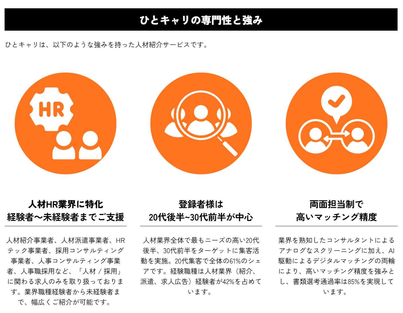人材業界・HR領域に特化した転職・人材紹介サービスです。登録者様は、20代後半~30代前半が中心で、全体の61%を20代が占めています。