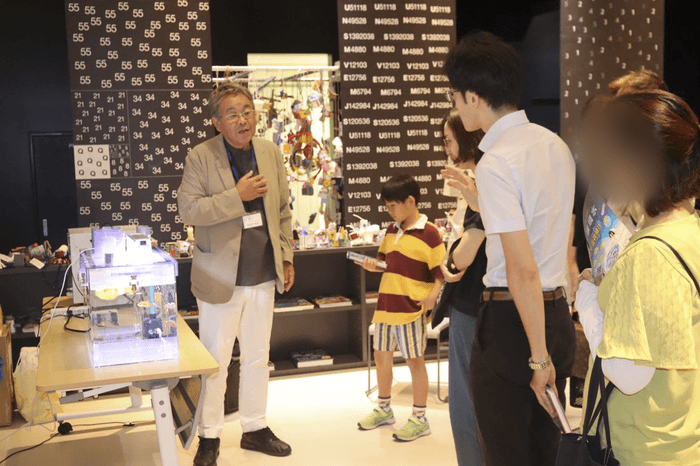 岡山理科大学の宇宙養殖実験水槽が展示されている、東京ドームシティ(東京都文京区)の宇宙体感施設「Space Travelium TeNQ(スペーストラベリウムテンキュー)」で8月3日、生物科学科の山本俊政准教授が好適環境水の仕組みから宇宙養殖の研究まで分かりやすく解説するトークイベントが行われ、約40人が参加しました。