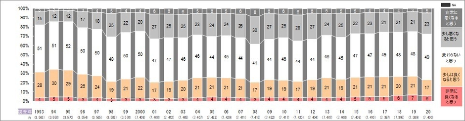 ・「非常に良くなる」「少しは良くなる」の計は昨年の28%から5ポイント低下し23%。