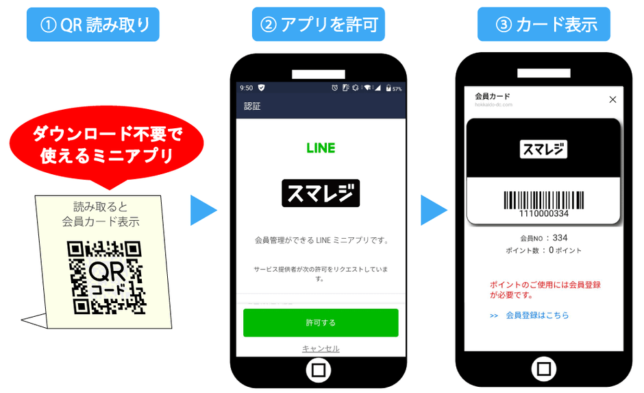 企業や店舗がデジタルで会員管理をするためには、アプリをダウンロードしてもらうことや、LINE公式アカウントに友だち追加してもらうことが必要となりますが、当システムの導入後は、お客様はダウンロード不要の「LINE」アプリ内で利用してもらうことができるようになります。アプリをダウンロードしたくないお客様は多くなっており、アプリ会員集めは多くの労力を費やす必要がありました。「LINEミニアプリ」を利用すると、ダウンロードが不要となることから会員集めが推進しやすくなります。