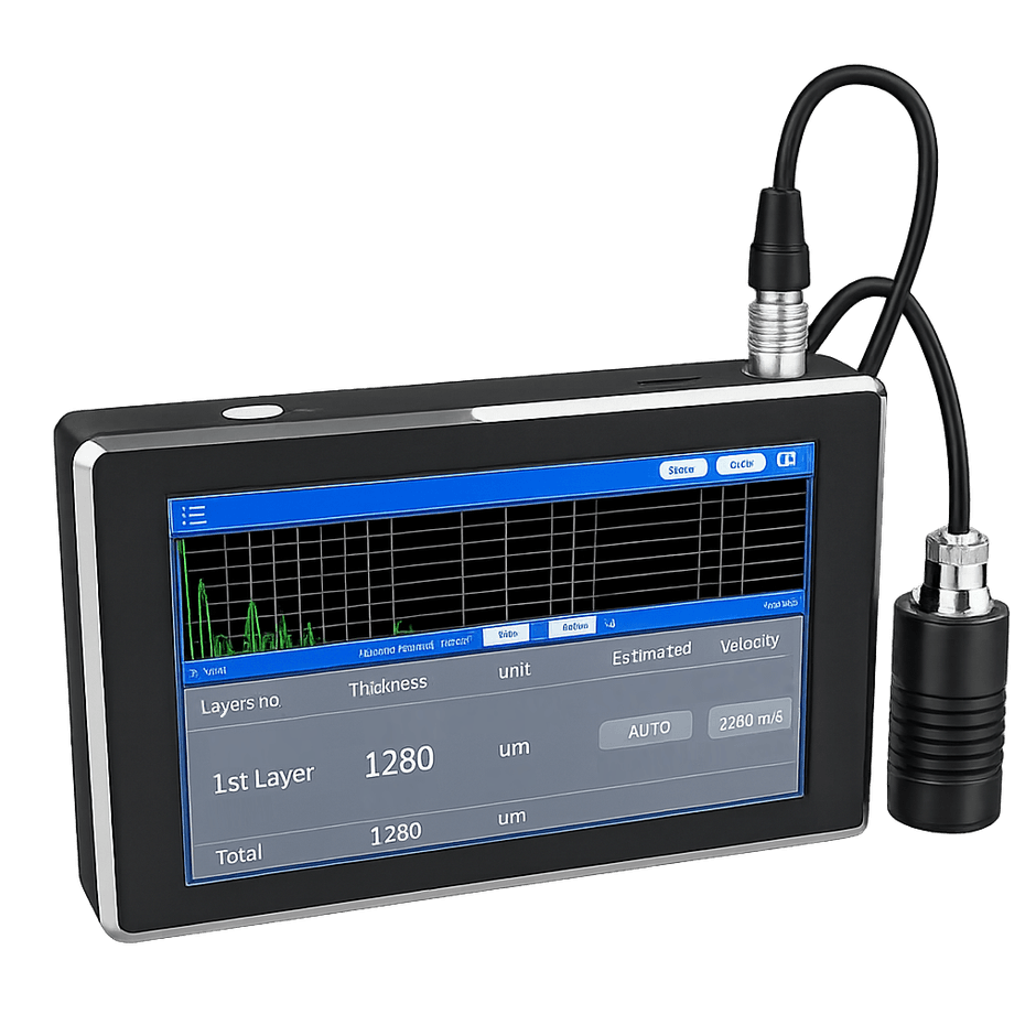 CX216は、鉄・アルミはもちろん、樹脂・ゴム・ガラス・FRP・セラミック・木材・コンクリートなど、さまざまな素地上の塗膜を測定できる超音波膜厚計です。電磁式・渦流式膜厚計とは異なり、素地の材質に依存しないことが大きな特長です。金属・非金属を問わず、幅広い対象物の膜厚測定に対応します。