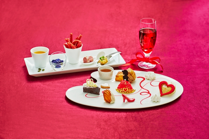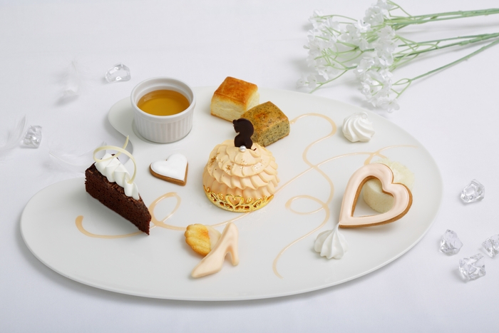ドレスを纏ったプリンセスケーキやハイヒール型のヒールチョコ、ハート型のアイシングクッキーなど、まるでアートのようなスイーツの数々を、パレットを模したプレートの上に散りばめました。お好みでお選びいただける“推しカラー”は、系列店※で開催し好評を博したレッド、ピンク、イエロー、ブルー、グリーンの5色に加え、このたび新たにラベンダーパープル、ホワイトベージュ、ブラックの3色をラインナップに追加。全8色よりお好きなカラーをお選びいただけます。ウエディングパティシエ渾身の、乙女心をくすぐるキュートなスイーツ・パレットをご堪能ください。