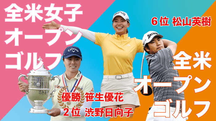 全米女子オープンゴルフでは、笹生優花と渋野日向子のワンツーフィニッシュをはじめ、アムンディ・エビアン選手権を優勝した古江彩佳、今季日本ツアー年間女王に輝いた竹田麗央、賞金ランキングで竹田に次ぐ2位についた小祝さくらがトップ10入り。また、パリ五輪で4位となった山下美夢有や、岩井千怜、岩井明愛など過去最多14名が予選を通過した大会となりました。