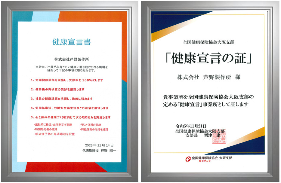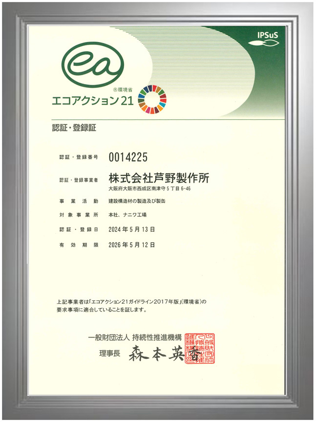 株式会社芦野製作所(大阪市西成区、代表取締役:芦野 剛一)は、従業員の働きやすさと取引先の信頼性向上、そして地域社会への貢献を重視した企業運営を今後、更に推進していきます。ESG・BCP・ISOの各要素を統合し、環境・品質・情報セキュリティの管理体制を一体化することで、公共・民間のニーズに持続的かつ安定的に応えられる仕組みを構築しています。