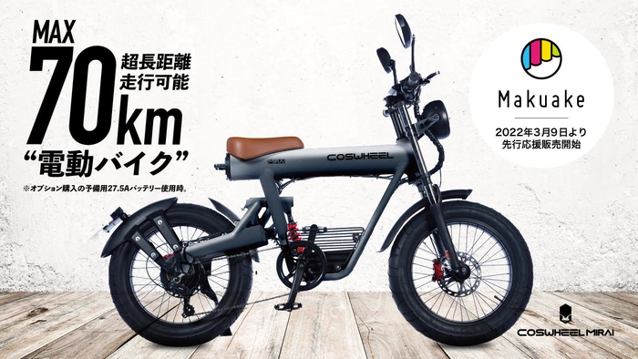 新型電動バイク『COSWHEEL MIRAI』、 4月16日クルマと遊びの総合展示会「ビークルスタイル」2022出展