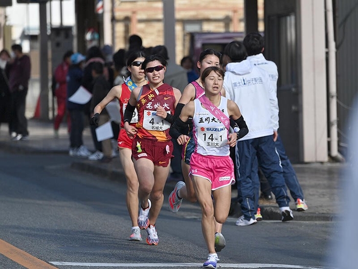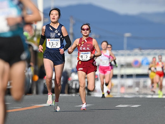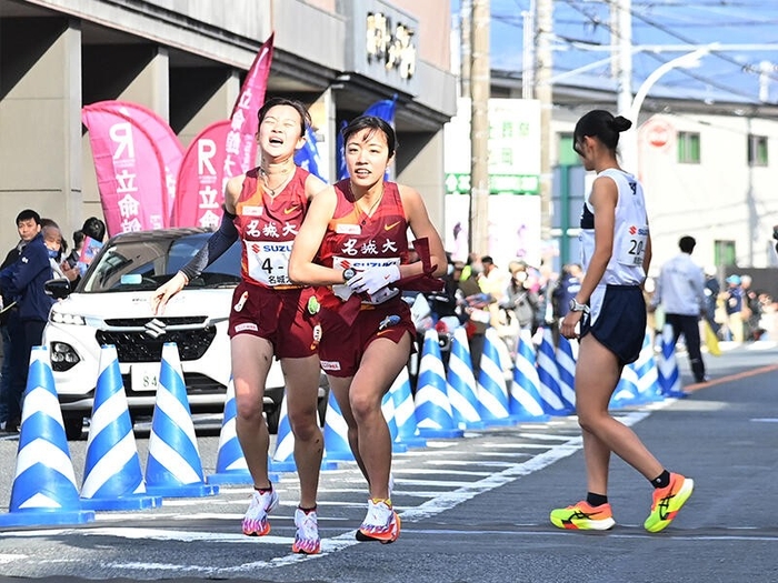 この区間では日本体育大学の齋藤みう選手(4年)が区間賞の走りで同校を9位からトップに押し上げ、大東文化大学、立命館大学がそれぞれ2、3位で中継。名城大学は先頭から1分16秒差の13位で次の区間へタスキをつないだ。