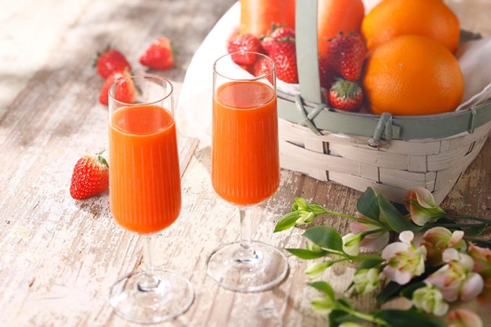 ストレスを感じやすい時期に飲みたいビタミン補給ジュース。ストレスにより消耗されるビタミンCを、旬のいちごとオレンジのジュースでしっかりチャージしましょう。