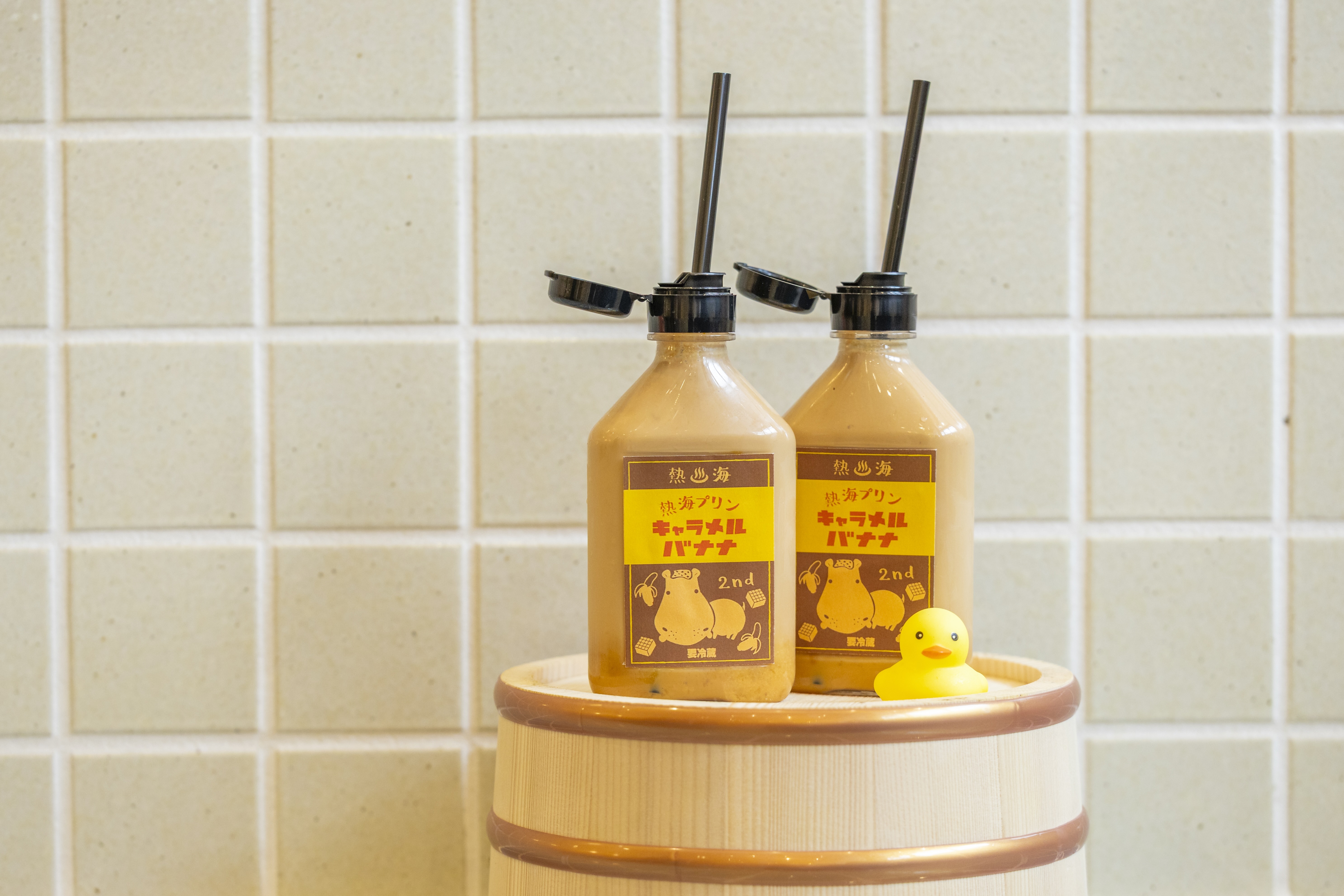 熱海プリンカフェ2ndで人気の「風呂上がりの牛乳三兄弟」に、限定味が登場します。キャラメルミルクにバナナの果肉が甘くとけあう、いい風呂の日WEEK限定のドリンクです。