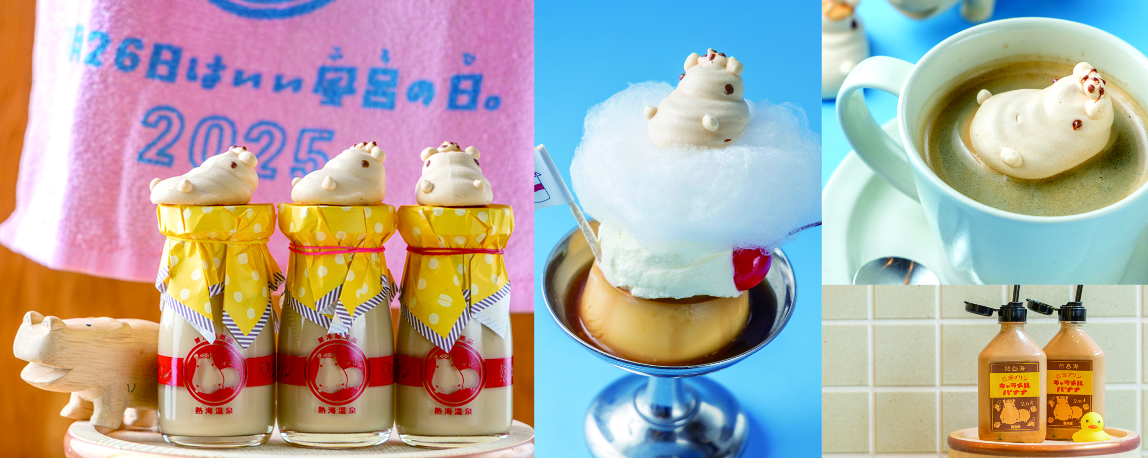 熱海で人気のプリン専門店「熱海プリン」(所在地:静岡県熱海市、運営:株式会社フジノネ)は、11月22日(土)~11月30日(日)の9日間、『いい風呂の日WEEK』を開催します。熱海の吹き上げる源泉をヒントに立ち上げた熱海プリンは、毎月26日の“風呂の日”を大事にしており、11月26日の“いい風呂の日”にちなみ、本企画をご用意いたしました。『いい風呂の日WEEK』は、毎月26日の風呂の日に販売している風呂の日限定プリン「湯あがりコーヒー牛乳プリン」が全店舗で期間中毎日販売されるほか、熱海プリンカフェ2ndでは「風呂上がりの牛乳三兄弟キャラメルバナナの発売」やドライブイン熱海プリン食堂では「ぷかぷかかばさんのトッピング、食堂の湯けむり皿プリンの発売」、そして、税込3,000円以上ご購入いただいた方に「熱海プリンオリジナル入浴料をプレゼント」、さらに、全店舗では「風呂の日限定グッズの発売」など、限定コンテンツが盛りだくさんです。湯処、熱海にある「熱海プリン」で癒され、ごゆっくりお楽しみください。