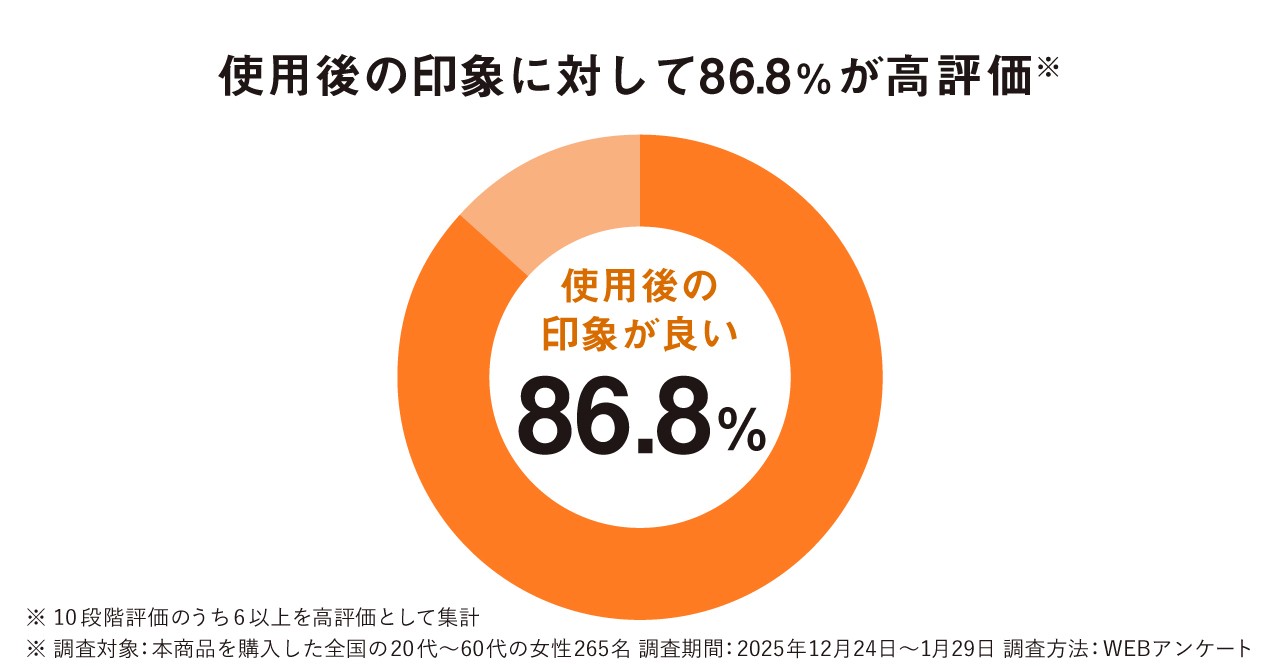 ・使用後の印象に対して86.8%が高評価 (※)