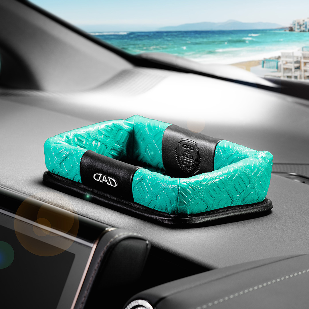 深みのあるオーシャンブルーの質感とモノグラムデザインが、車内コーディネートの幅をさらに広げ、日常のドライブをより豊かに彩ります。