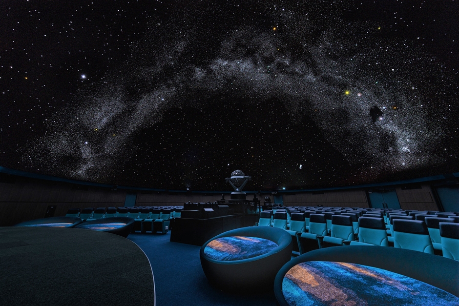 ※中央後方のお席はプラネタリウム機器の関係でステージが見えにくくなっておりますが、星空・ドーム演出は一番見やすいエリアとなっております