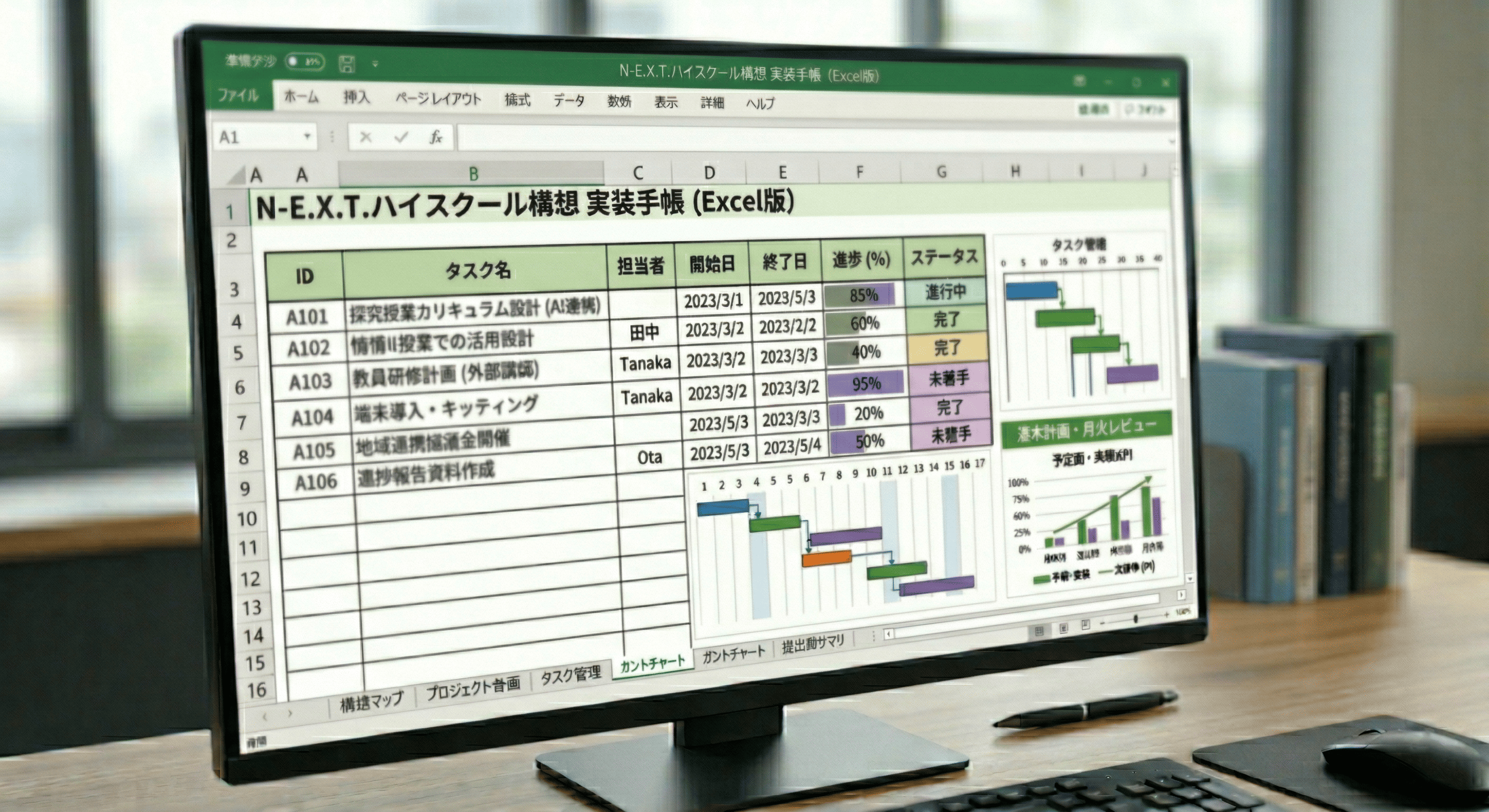 今回公開する「業者提案評価ガイド」は、提案が本当に「生徒を主語にした教育」に資するかを出発点に、「自ら問いを立てる力」や「他者とともに価値を創り出す力」といったAI時代に必要な能力の育成、教師の専門性向上、地域の実情への適合、3年間の総コスト、契約終了後のデータ返却と可搬性、事業者撤退時を含む持続可能性までを確認できるよう構成しています。また、「実装手帳」は、構想マップで今年度重点と主要KPIを整理した上で、プロジェクト台帳、タスク管理、週次計画、月次レビューへと落とし込み、会議後の宿題整理から提出用サマリ、進捗の可視化までを一貫して支えることで、N-E.X.T.ハイスクール構想を「導入して終わる改革」ではなく、学校と教育委員会が自ら回し続けられる改革へとつなげる実務テンプレートです。