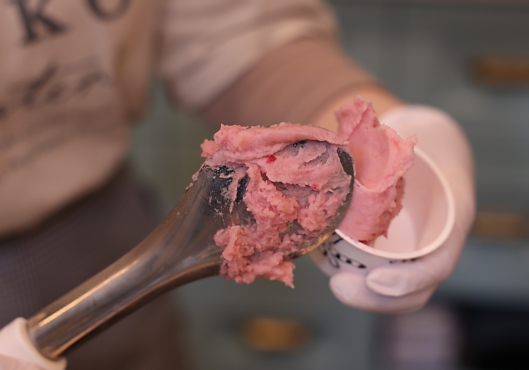 今年1月、オーナーの富澤奈美さんがイタリア・リミニで開催されたジェラートの世界大会「SIGEP(シジェップ)2026」に出場。大多喜町の名産である食香バラとローゼルを使用したジェラートを出品し、ソルベ部門で世界第9位を獲得しました。一からレシピを開発し、口溶けのなめらかさを追求したという「ローズ&りんごローゼル」は、同じバラ科のりんごをベースに、ほど良い酸味のあるローゼルと、甘く上品な食香バラがふわっと香る華やかな一品。生クリームを47%も使用した自慢のソフトクリームとの相性も抜群です。