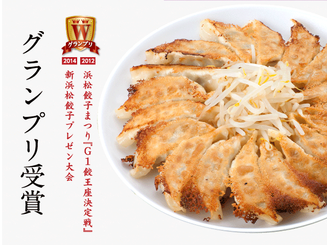 浜太郎の餃子は、豚肉は全国食肉品評会で1位になったこともある銘柄豚「浜名湖そだち」を使用、野菜は国産の厳選素材を季節ごとに産地を見極め仕入れているなど、国産100%の食材を使った無添加で化学調味料や合成保存料を一切使わない餃子です。お店に併設された工房で作り、出来立て、一番美味しい状態で餃子をお出ししています。2012浜松餃子祭り「G1餃王座決定戦」でグランプリ、2014新浜松餃子プレゼン大会でグランプリを受賞するなど、全国でも大変美味しいと言われる「浜松餃子」の中でも、ひときわ高い評価をいただいております。