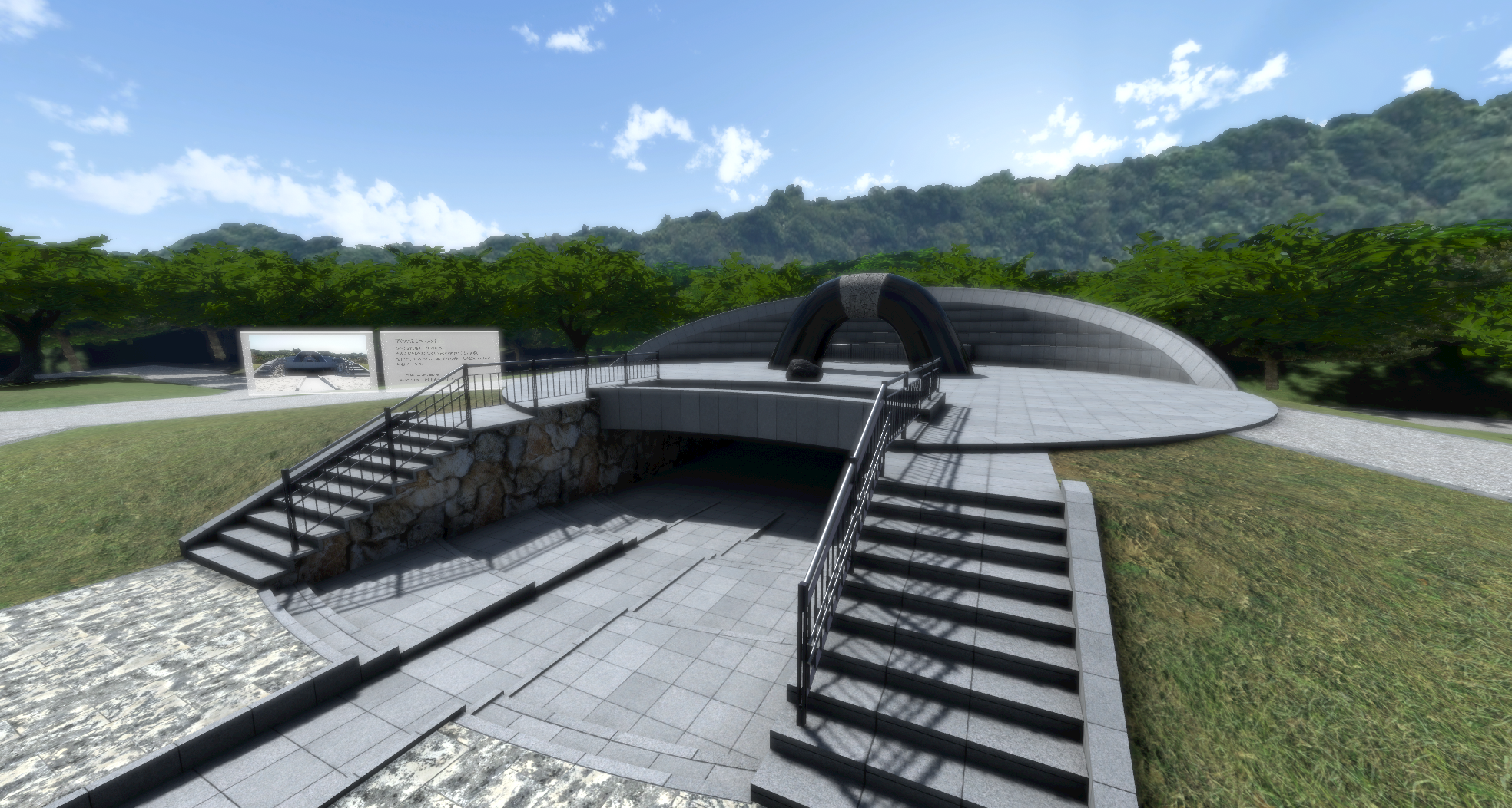 平和の丘周辺を再現したイベントエリアでは、平和学習コンテンツの紹介に加え、慰霊の日などのイベント時にはライブビューイング会場として活用を予定しています。
