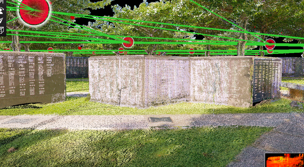 ① 現地の景観をそのまま保存する「点群アーカイブ」