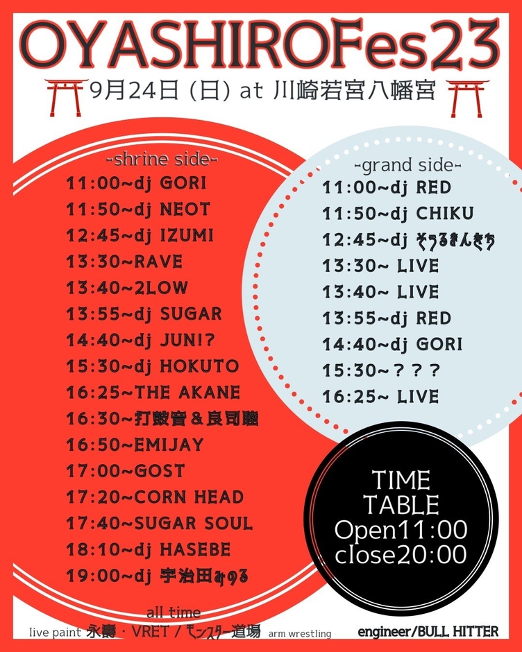 2017年からスタートし今年で開催7年目となり、都内や海外でも活躍中の国内TOPDJ達をメンバーに迎えた日本初のDJ主体神社FESです。DJ以外にもライブ、アート、和太鼓などの演奏やお神輿の担ぎ体験もでき境内で飲食もできます。