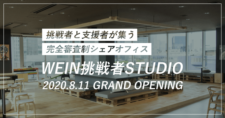 最高の環境と最高の仲間が、あなたの人生を変える 完全審査制シェアオフィス「WEIN挑戦者STUDIO」オープン! 夢や志が社会に向く挑戦者・支援者限定で入居者募集開始