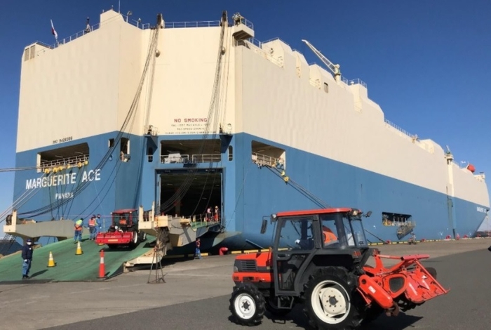 両社は、昨年9月に越境ECサイトを活用した中古農機輸出事業の共同検討に関する覚書を締結し、唐沢農機サービスの「ノウキナビ」から中古農機5台を調達。商船三井が運航する自動車専用船「MARGUERITE ACE」にて、神戸港及び木更津港から輸送し、本年2月19日にケニア・モンバサ港へ到着しました。