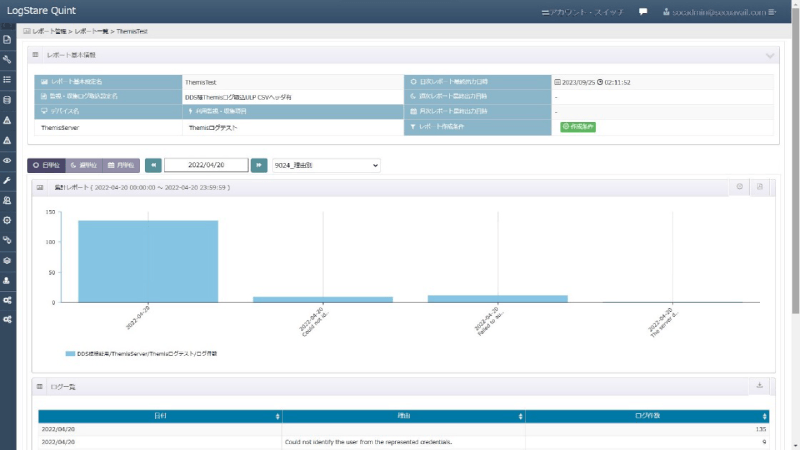 LogStareはEVEMAやThemisのログを自動で収集・分析し、ログイン試行などの不正アクセスを発見するセキュリティレポートやアラートはもちろん、従業員の日々の認証時刻を元にした勤怠表の作成なども可能です。