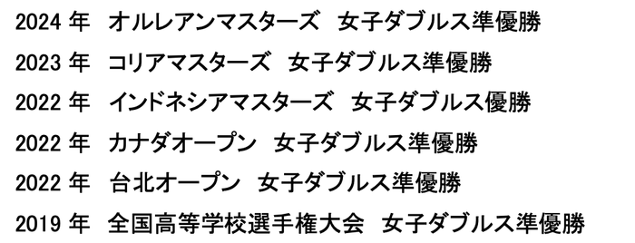 廣上選手は身長を生かした、攻めのプレースタイルを身上とし、ふたば未来学園高校時代は全国高等学校バドミントン選手権大会(ダブルス)で準優勝、ドイツジュニアオープン(ダブルス)では優勝を飾る等、若くから国内外で頭角を伸ばしてきました。
