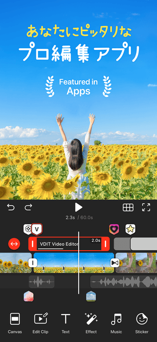 「VDIT」は、誰でも簡単にプロのような仕上がりの動画編集ができるオールインワン動画編集アプリです。