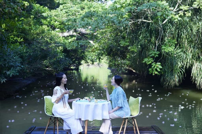 大きな川からジャングルのアーチを抜け、支流へ入った場所にこのプログラムのためだけの特等席を用意します。川の奥にひっそりと佇む席では、落下したばかりのサガリバナを見ながら、心地よい風や美しい木漏れ日を静かに楽しめます。西表島の大自然を感じながら朝食をとることができます。