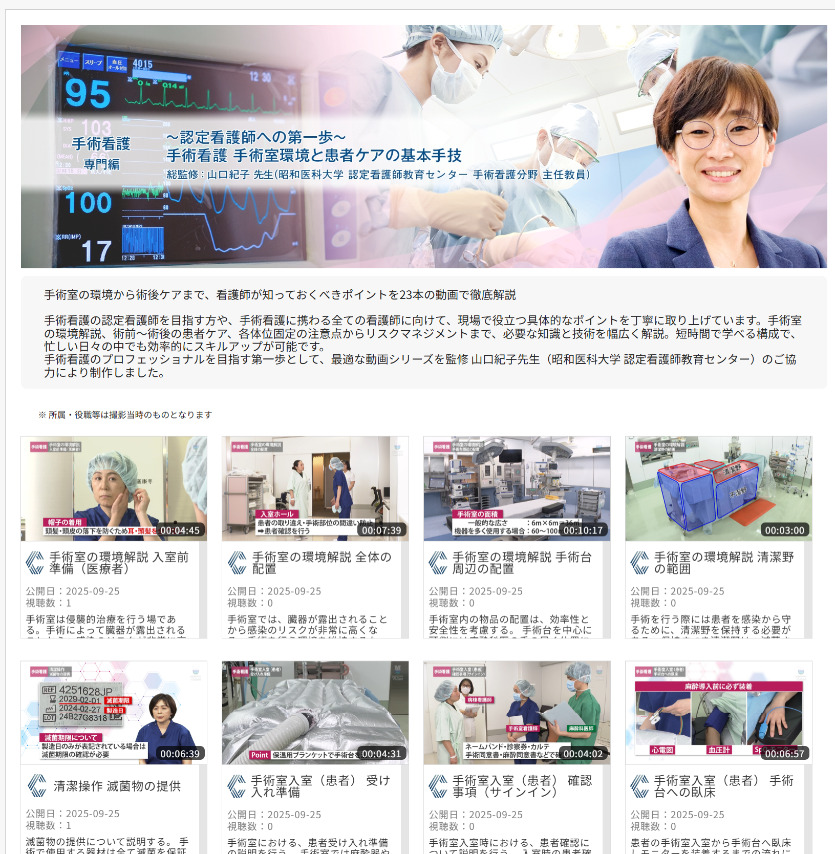 「Medical*Online Video(メディカルオンラインビデオ)」 ~認定看護師への第一歩~ 手術看護 手術室環境と患者ケアの 基本手技(全23動画)を新たに配信開始!!