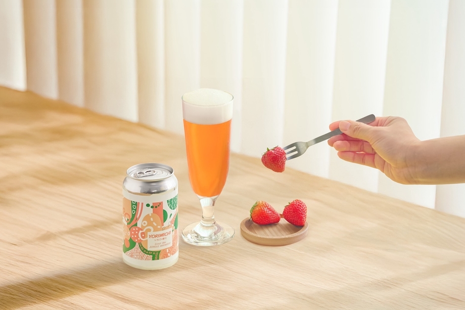 シリーズ第1弾「YORIMICHI -いちご×香川-」は、香川県丸亀市で大切に育てられた完熟いちごを贅沢に使ったサワーエール。口に含んだ瞬間に広がる、いちごの優しい甘酸っぱさが、サワーエールの酸味と絶妙に溶け合います。