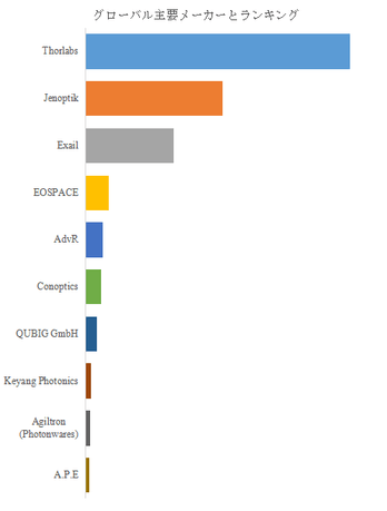 主要メーカーの競争構造を見ると、Thorlabsが圧倒的な市場存在感を示しており、グローバルランキングで首位を維持している。研究用途の幅広いラインアップとグローバル物流体制の強さが特徴である。続くJenoptikは欧州での産業レーザ分野の強固な顧客基盤を背景に、安定した成長を維持している。フランスのExailは高帯域・低ノイズEOMで評価が高く、量子通信・量子センシング用途を中心にシェアを拡大している。さらに、EOSPACE、AdvR、Conoptics、QUBIG GmbH、Keyang Photonics、Agiltron(Photonwares)、A.P.E.といった企業が特定の周波数帯、結晶加工技術、レーザ向けニッチ領域で存在感を持つ。地域別に見れば、欧米は研究用・高性能モデルで世界をリードし、アジアは通信・量産向け市場で躍進する構造が形成されつつある。プレーヤーの差異化軸も、単純な性能競争から、結晶材料の歩留まり、RFドライバ統合技術、パッケージング技術、生産コスト戦略へと多様化している。