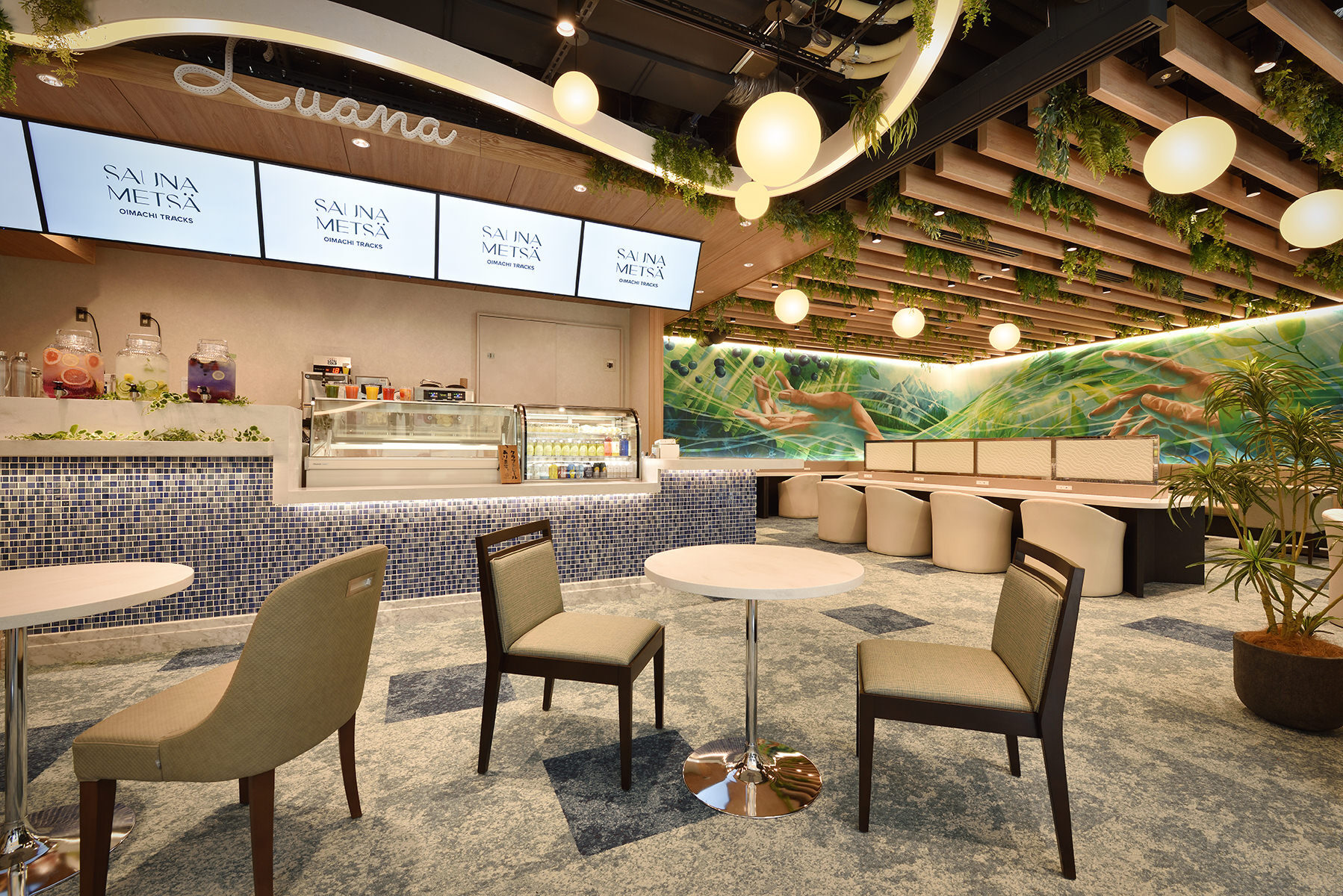 エントランスと飲食エリアには、国内外で活躍するミューラルアーティスト OVER ALLs による、“癒しの循環”をテーマにした壁画を展開。泉の女神と自然の風景をモチーフに、サウナメッツァのコンセプトに合わせて描き下ろされた作品です。