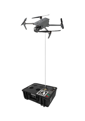 商品概要:サーマルカメラ及びAIを搭載したドローンを有線給電化し、上空からの長時間連続監視を実現。
