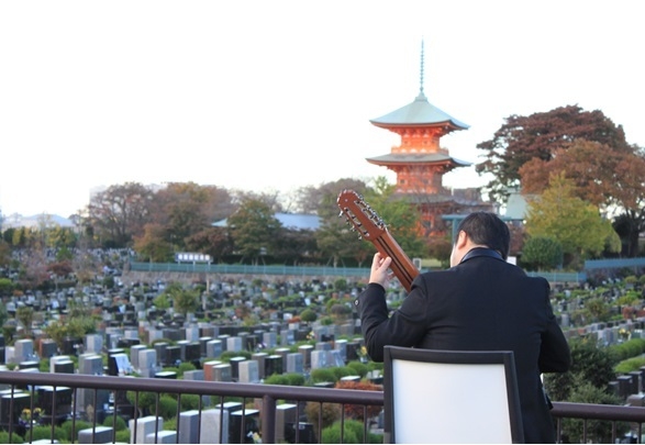 国内外で活躍されているクラシックギター奏者 鈴木大介氏が奏でる優しい音色が、薄暮れがせまる青葉園内に響きわたり、御霊に寄り添う美しい時間となりました。青葉園では、今後も御霊の魂を慰めるコンサートを行っていく予定です。