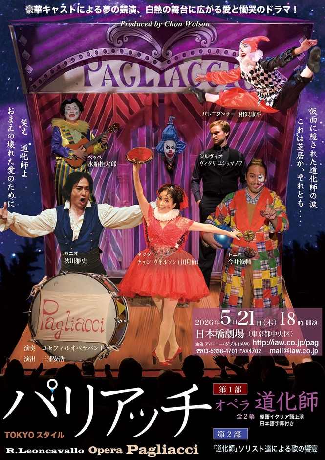 情熱の歌姫 チョン・ウォルソンがヒロインでカニオの妻・ネッダを、今井俊輔が旅回り一座のひねくれものの道化・トニオを演じます。