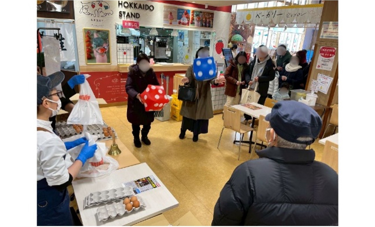サイコロの出た目に応じて北海道とうきび茶を最大4本までGET!