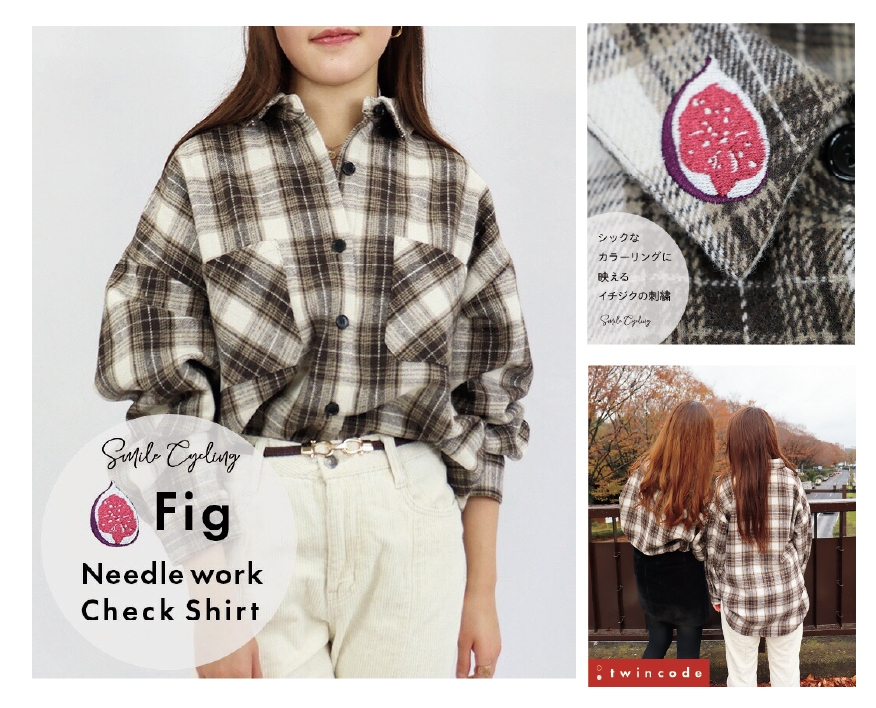 イチジク刺繍チェックシャツ (税込¥4,290)