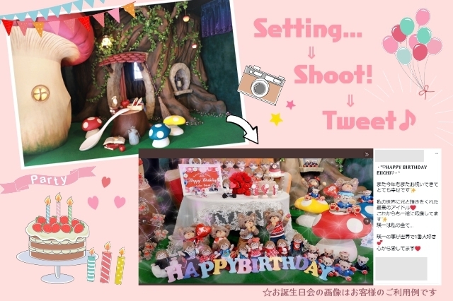 推しという概念は徐々に一般的になりつつあるものの、本人不在の誕生日会のために若年層でも気軽に使える撮影施設は、多いとは言えません。当スタジオでは、多様になりつつある推し活カルチャーを盛り上げるため、童話モチーフのかわいい世界が広がる独創的なスタジオセットを、より安心で楽しくご利用いただけるよう取り組んで参ります。