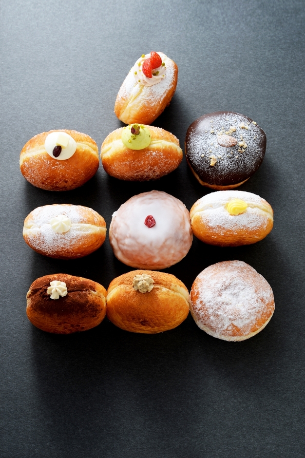 「ミルクドドレイク」の生ドーナッツは、北海道の雄大な大地がある十勝の小麦粉をメインに卵とバターをふんだんに使用した、しっとりなめらかな生地が特徴。北海道美深町の牧場で育てた保存料など使っていない低温殺菌の牛乳は、コクが出て甘味があります。またクリームには北海道根釧地区の生乳を使用した濃厚な生クリームをベースに様々な味付けのクリームをご用意しております。また高温で一気に揚げることで、外はカリッと揚がり、中身は生クリームのようなとろける口溶けになるよう仕上げています。味は自家製カスタード、チョコ、ミックスシュガー、季節商品など約10種です。