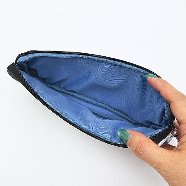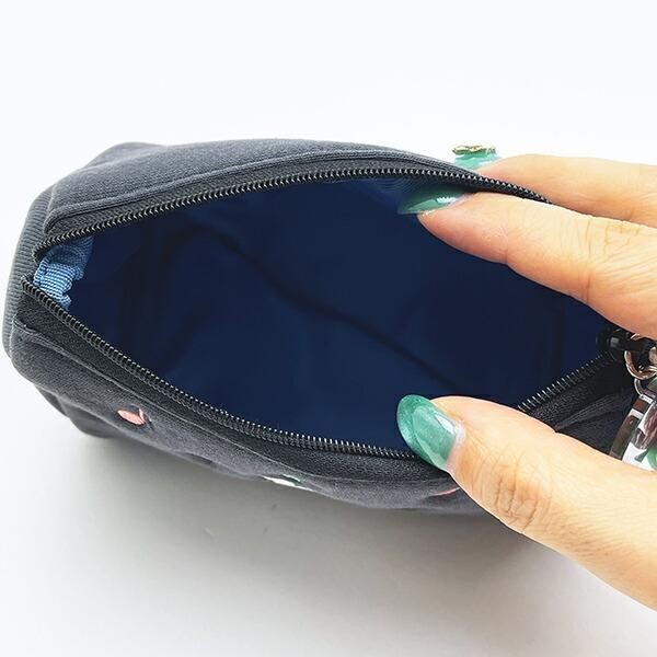 先ほどのポーチと比べて長細いタイプなので、ペンを入れたり、メイクブラシを収納するのにぴったりです。アクリルの引き手がワンポイントで開け閉めもしやすいのもうれしいポイントです。サイズ:9cm×21cm×2.2cm 素材:綿、ポリエステル、PE、ナイロン、不織布、アクリル、亜鉛合金、鉄
