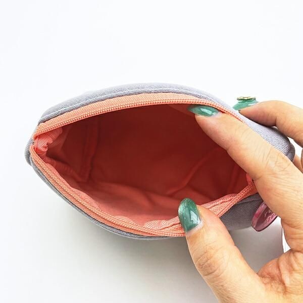 スウェット生地でもっちりとした手触りなのもファッション性があっておしゃれな見た目です。小物を入れたりコスメを入れるのに丁度よいサイズ感です。サイズ:12cm×14.5cm×2.2cm 材:綿、ポリエステル、PE、ナイロン、不織布、アクリル、亜鉛合金、鉄