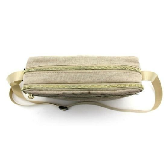 ベージュは上に2つ、前に1つチャックがあって収納力もしっかりあります。