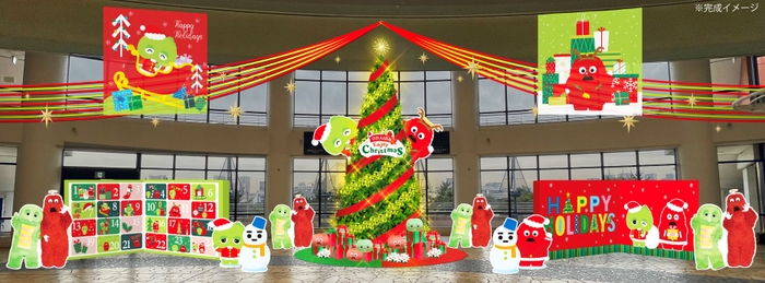 ガチャピン・ムックをイメージして赤と緑を基調とした高さ約6.5mのメインツリーが登場!ガチャピン・ムックがツリーから顔を覗かせて、皆様をお出迎えします。さらに、ゴールドに輝くオーナメントやプレゼントボックスなどで、楽しいクリスマスの空間を演出。その他にも、ツリーの近くにはガチャピン・ムックの等身大スタンドパネルや絵本型のオブジェを配置。会場を賑やかに埋め尽くします。楽しいクリスマスを思い出に残すフォトスポットとしてもお楽しみください。