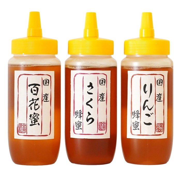 国産りんご蜂蜜、国産さくら蜂蜜など。
