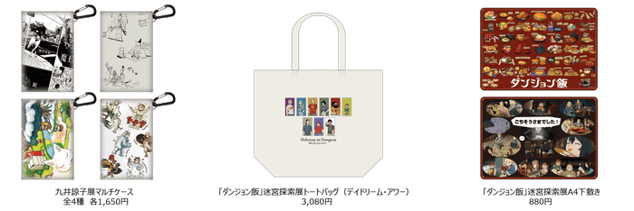 また、九井諒子展と「ダンジョン飯」迷宮探索展オリジナルグッズも多数展開。「ダンジョン飯」迷宮探索展A4下敷き、トートバッグや、九井諒子展マルチケースといった各地の巡回でも人気のグッズをはじめ、130点以上がラインナップ。こちらもお見逃しなく(グッズは売り切れる場合があります。商品詳細は展覧会ホームページをご確認ください)。
