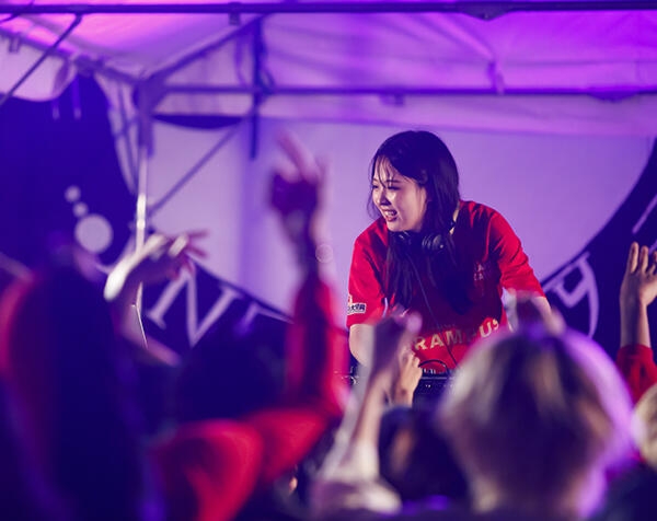 2024年11月の名城大学祭。音楽が場内に響き始めると観客が一気に押し寄せ、ELLIE(江里奈さん)が会場内のボルテージを最高潮にまでいざなっていく。ELLIEの全身全霊のジェスチャーと弾ける笑顔が多くの人を魅了し、会場全体が一つになる。一方、舞台を下りた普段の江里奈さんは驚くほどおしとやか。そんな二面性を持つ江里奈さんの魅力に迫るべく、なぜ名城大学を選んだのか、その理由をはじめ、現在のDJ活動からゼミの研究、将来のことまで聞きました。