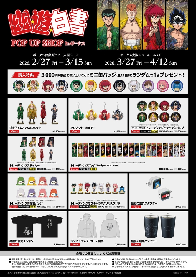TVアニメ『幽☆遊☆白書』ボークスにてポップアップショップ開催決定!