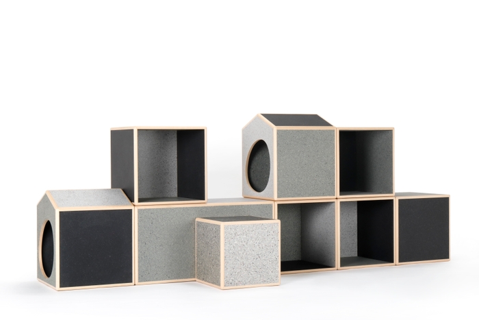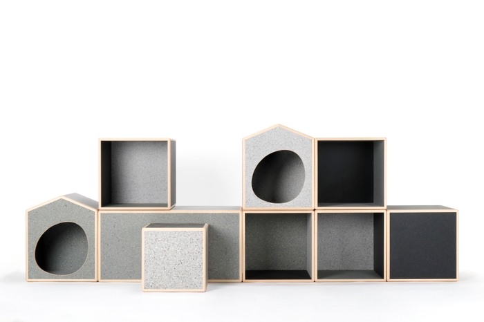 ・ファッションロス(衣類廃棄)をボードに美しく再資源化(デザイン+リサイクルでアップサイクル)した「PANECO® board S」でつくった長く愛せるかわいい家具